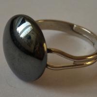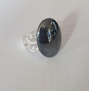 Bague hématite, pierre du sommeil, monture réglable 19 mm fine ou épaisse.