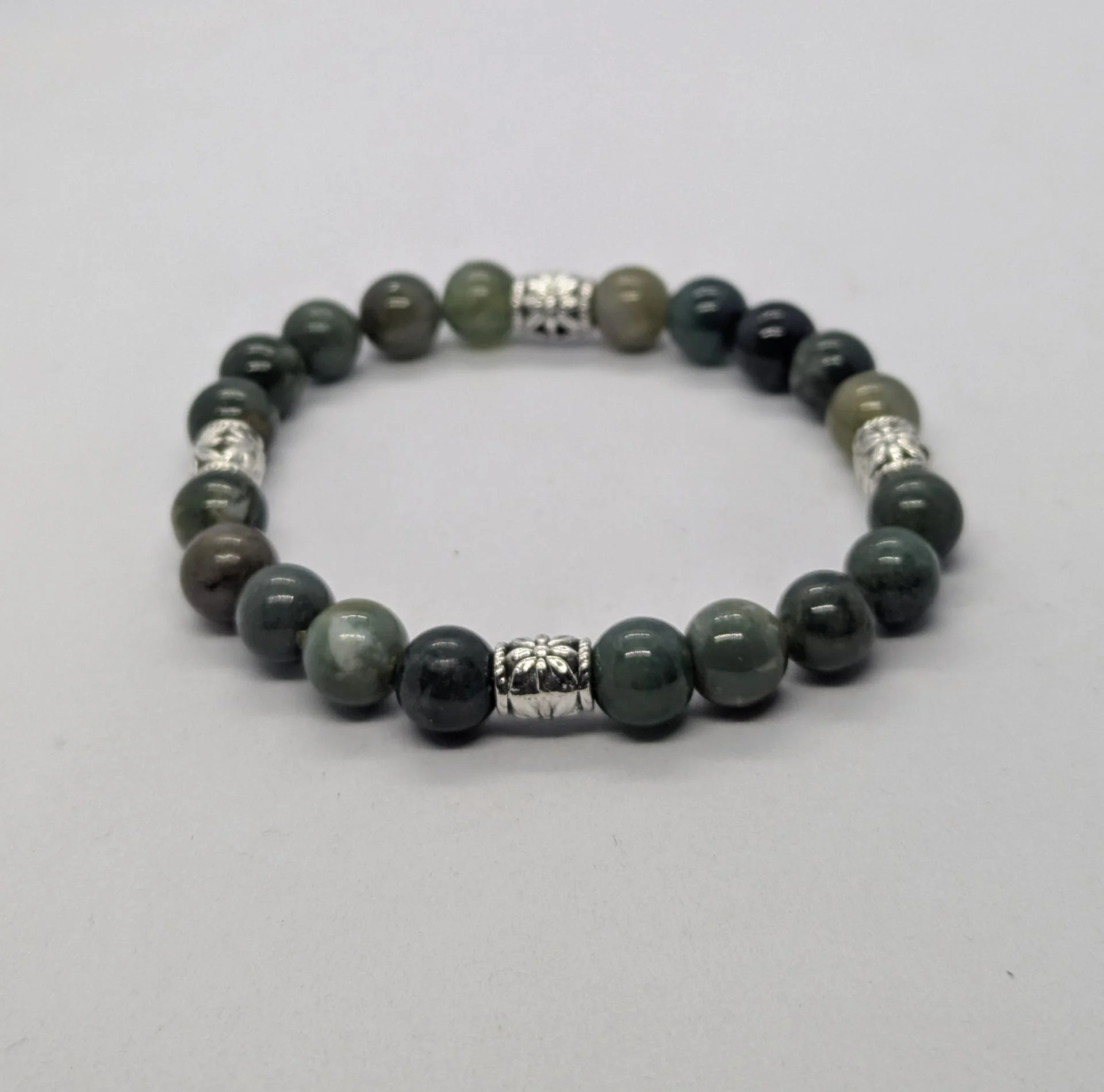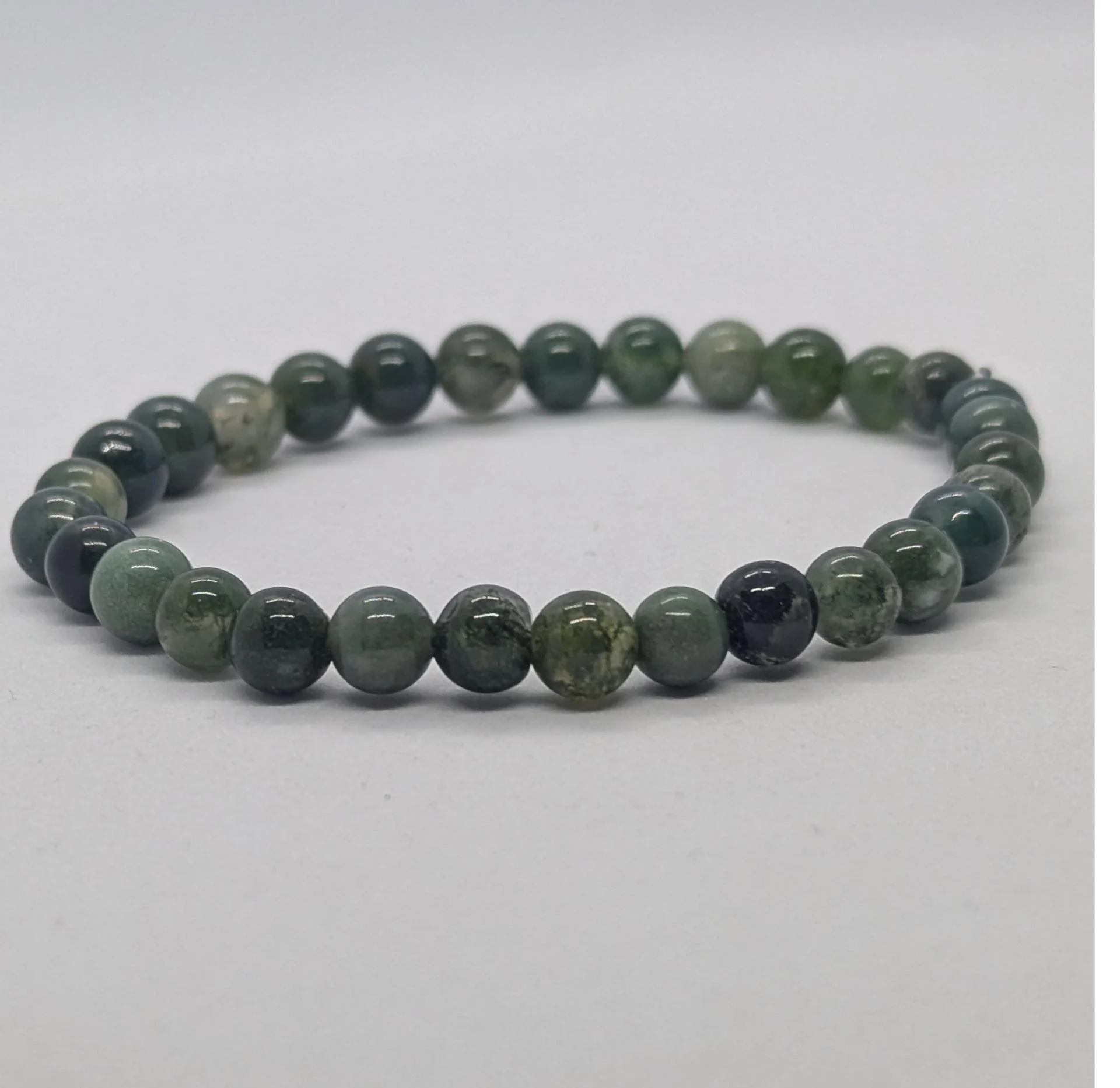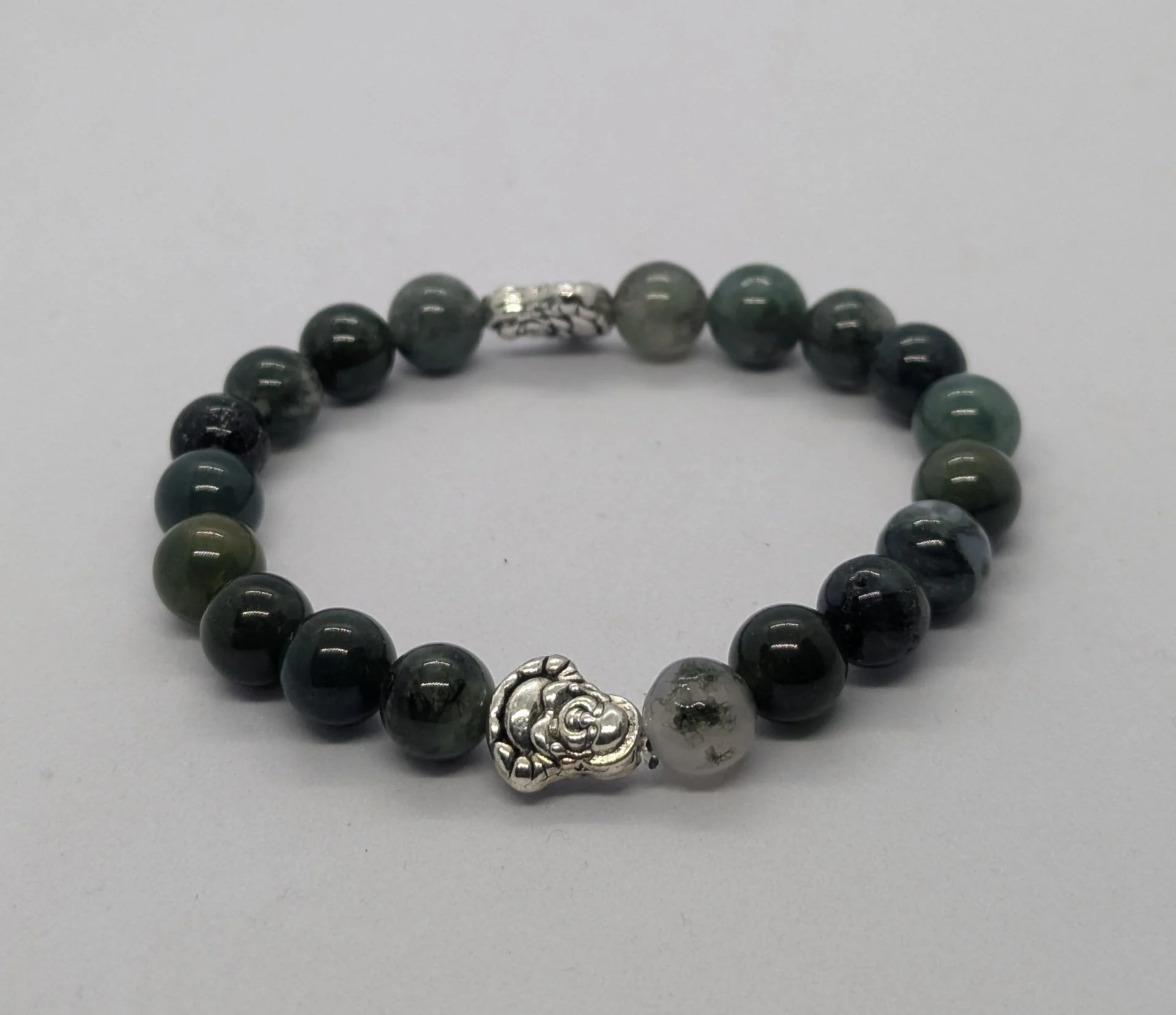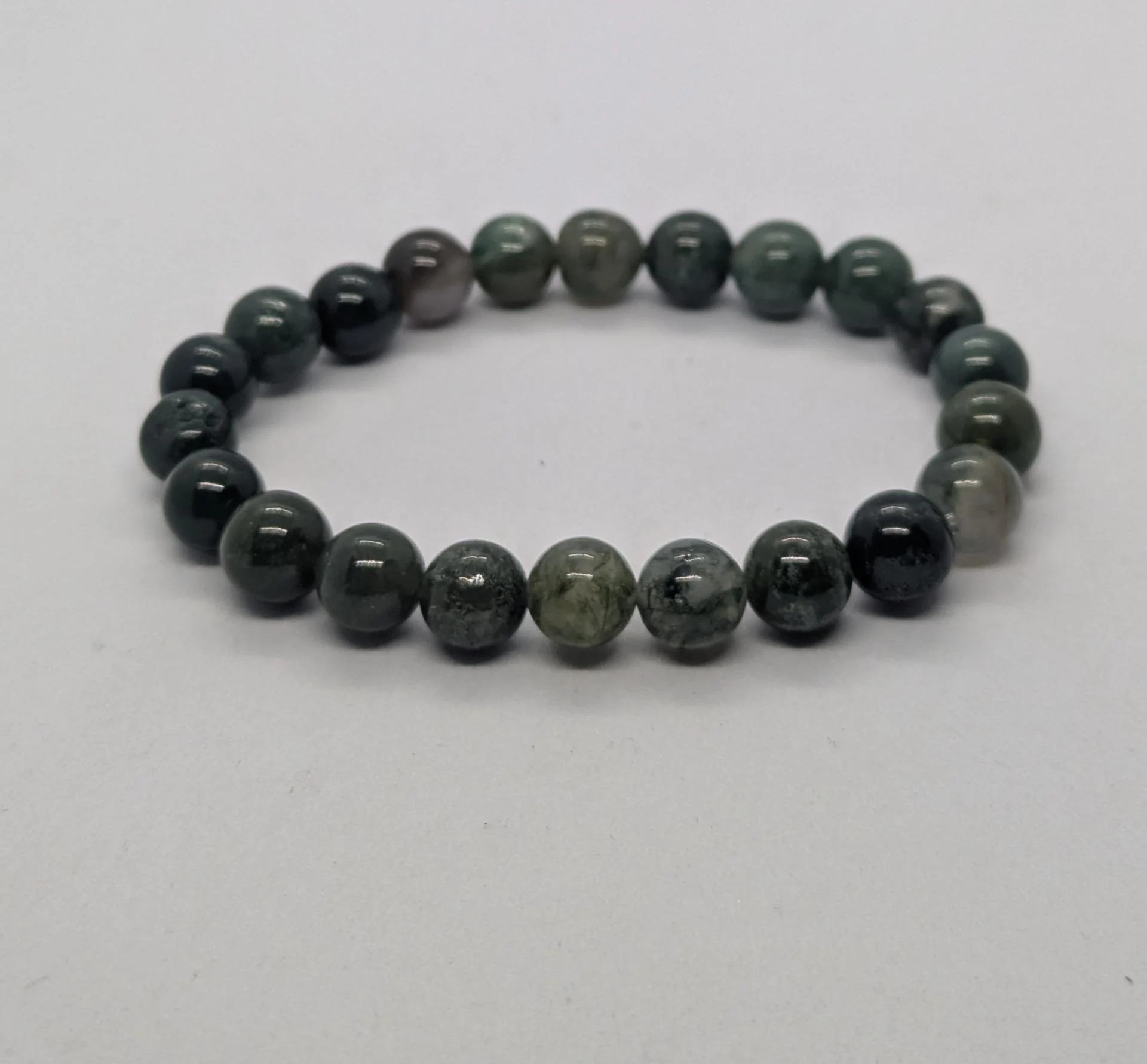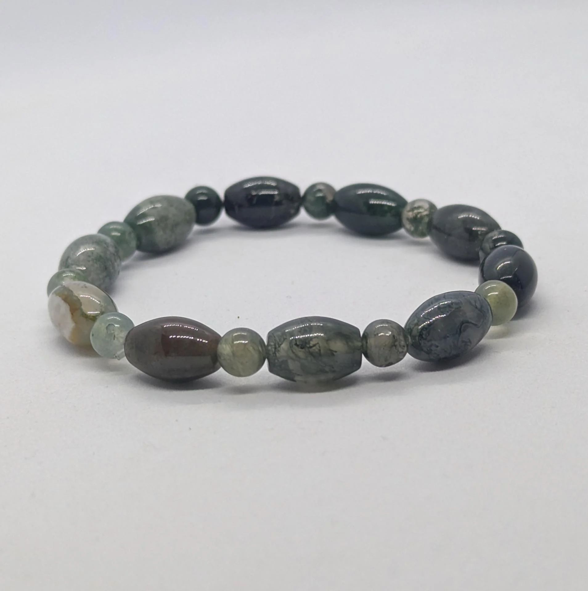 Bracelet homme Agate mousse, pierre du diabète, monté sur fil élastique.Taille...À partir de