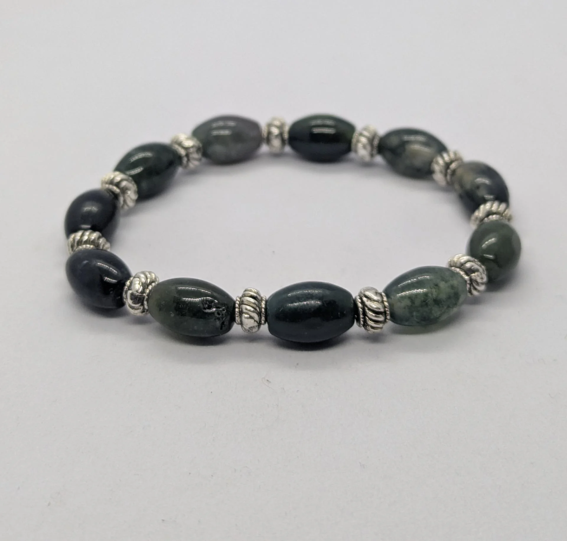 Bracelet en Agate mousse, pierre du diabète. Taille env 18 cm.