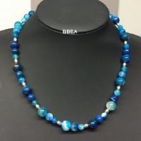 Collier en Agate teintée bleue, pierre de chance et d'harmonie. Monté sur fil de nylon, fermeture aimantée.Taille env 50 cm.
