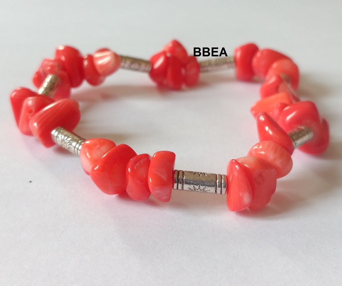 Bracelet corail chips monté sur fil élastique. Taille env 18 cm.