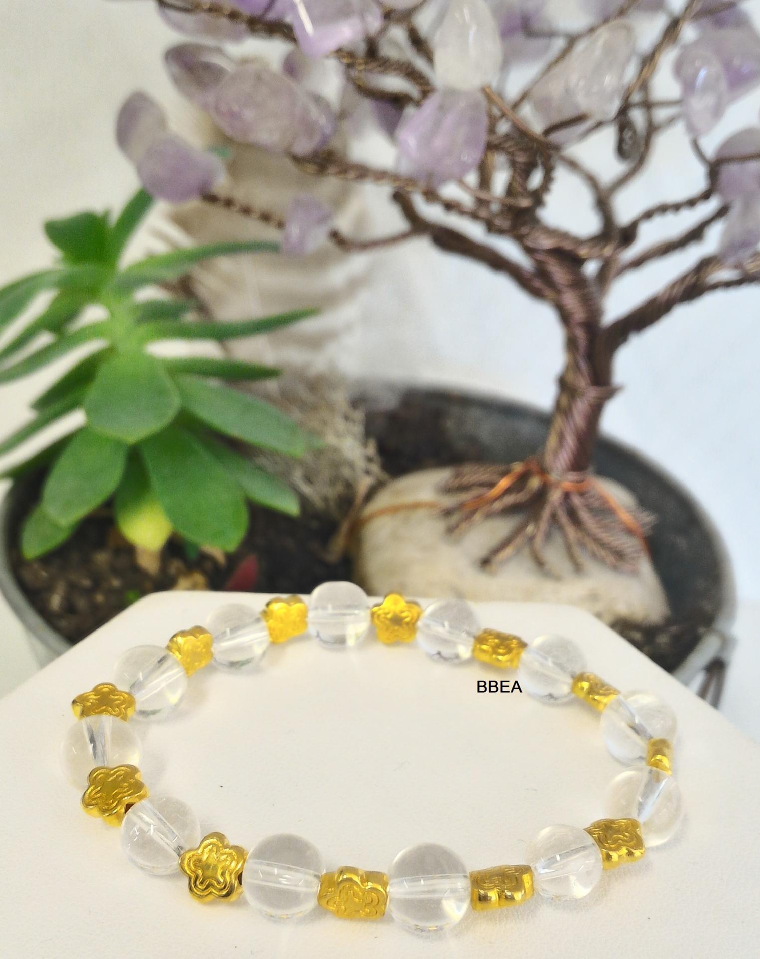Bracelet cristal de roche, pierre du bien-être, monté sur fil élastique