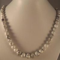 Collier Howlite, monté sur fil de nylon, fermeture aimantée. Taille env 50 cm. La Howlite aide à l'élimination de l'eau et retend les tissus, donc est très utile en cas de régime