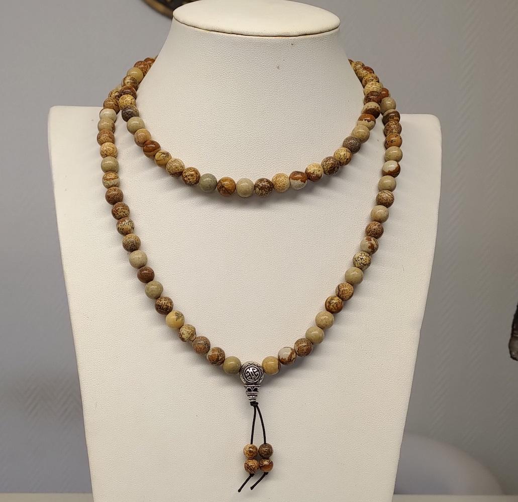 mala tibétain jaspe paysage bracelet mala collier mala mala tibétain mala jaspe peysage mala femme mala homme
