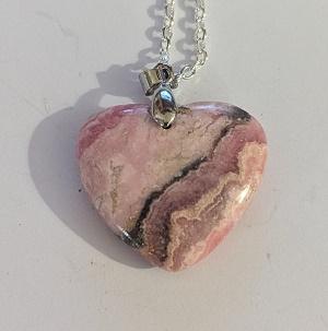 Pendentif en Rhodochrosite, pierre contre la jalousie, monté sur fil de nylon, fermeture aimantée. Taille env 50 cm.